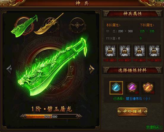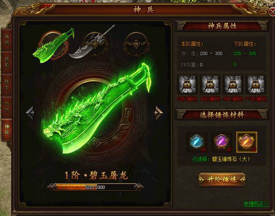 l 碧玉屠龙:提供攻击力属性及PK伤害加成