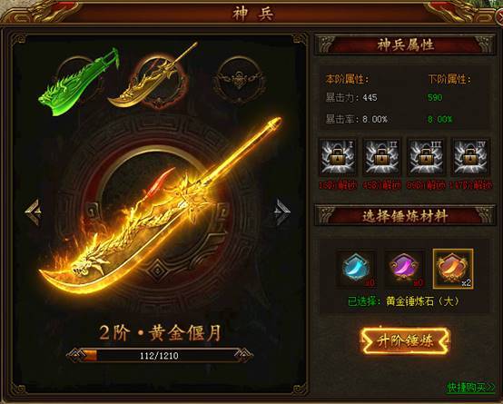 l 目前开放的神兵有两种:黄金偃月、碧玉屠龙